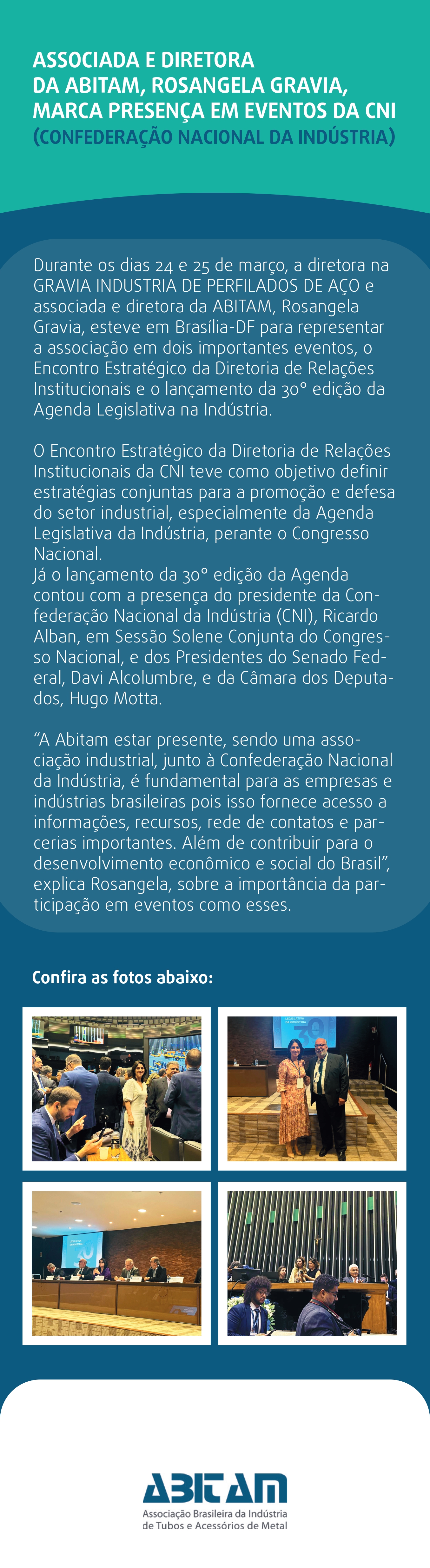 Associada e diretora da Abitam, Rosangela Gravia, marca presença em eventos da CNI
